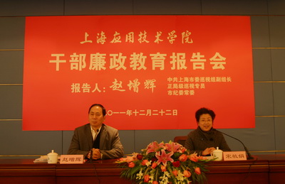 12月22日,我校召开干部廉政教育报告会,市委巡视组副组长、正局级巡视专员、市纪委常委赵增辉同志应邀作专题辅导报告。党委书记祁学银、院长卢冠忠、党委副书记、副院长康年、副院长陈东辉及全校副处级以上党员干部和从事人、财、物重要岗位工作的同志聆听了报告。党委副书记、纪委书记宋敏娟主持报告会,并就进一步做好党风廉政建设和反腐工作提出要求。