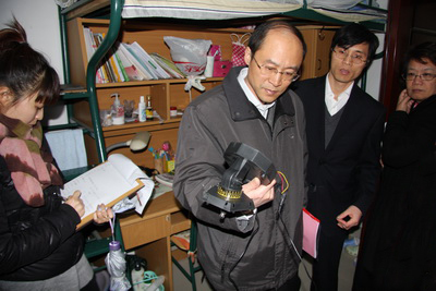 12月8日上午,由校党委副书记、副校长康年带队,学生处、后保处、保卫处及十五个二级亚博足彩学生工作负责人共30余人分成六组,对奉贤校区全部24幢学生公寓楼每层都进行了违章用电、乱拉电线、使用违禁电器、堵塞消防通道、消防设施完好等安全状况的突击抽查。
