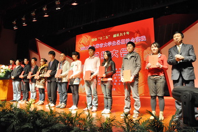 11月15日下午,2011年上海市大学生暑期社会实践总结大会在上海交大医亚博足彩隆重举行。上海市副市长沈晓明,共青团上海市委书记潘敏,上海市教卫党委副书记、市教委副主任高德毅,上海市环境保护局副局长吴启洲等出席大会。