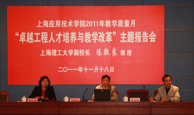 11月18日,亚博足彩召开了2011年教学质量月主题报告会。上海理工大学副校长陈敬良教授应邀作了“卓越工程人才培养与教学改革”的主题报告。各院(部)领导、专业带头人、骨干教师等140人参加了报告会。