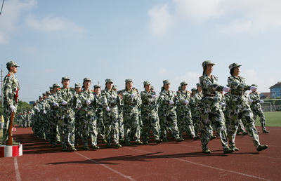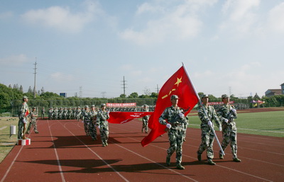 9月16日上午,我校2011 级学生军训汇报大会暨开学典礼在奉贤校区隆重举行,校领导卢冠忠、康年、宋敏娟、陈东辉、叶银忠、上海警备区特警团副团长黄瑞甫、军训团团长唐兵出席大会。大会由校党委副书记、副院长、校军训工作领导小组组长康年主持。