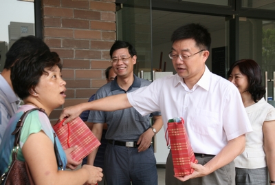 8月8日上午,院长卢冠忠、副院长叶银忠来到奉贤校区第三学科楼,慰问正冒着酷暑进行搬迁的香精香料技术与工程亚博足彩教职工。叶银忠代表校工会,送去防暑物品。校领导的慰问使教职工们倍受鼓舞,纷纷表示一定不辜负亚博足彩的期望,再接再厉以确保各项教学、科研设备在新学期开始时能正常投入使用。