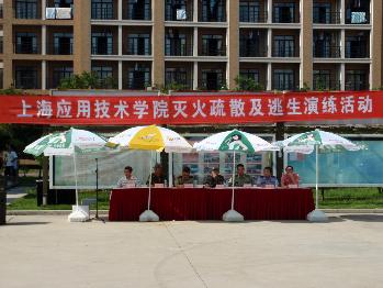 康年宣布“演练正式开始”。顷刻间,8号楼冒出滚滚黑烟,警铃骤响,学生纷纷用湿毛巾保护口鼻,冲出楼,有秩序地排队跑向安全地点。部分没有跑出的学生在二、三楼呼救,消防官兵迅速架设云梯冲上失火点,用灭火器扑救初起火焰。同时,急救人员冲进8号楼用担架抬出受伤人员,医生现场迅速组织包扎、人工呼救等抢救。部分消防官兵用高压水龙头向另一处失火点喷射,火势逐渐熄灭。楼内全面展开搜救工作。最终核实,参加演习的同学全部疏散至安全区域。整个演习有条不紊,圆满结束。演习后,奉贤消防支队星火中队官兵在现场作消防技能汇报。
