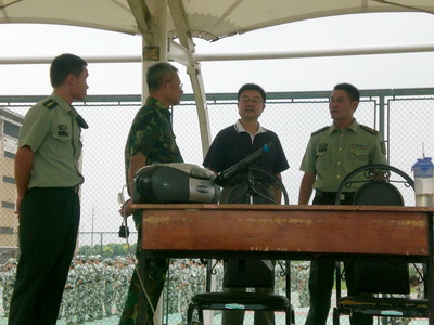 8月14日是军训首日,校党委书记祁学银专程到校武装部和军训指挥部看望工作同志,并就军训工作提出要求。他会见了军训团团长并对部队官兵承训表示感谢。8月21日上午,校党委书记祁学银再次来到奉贤校区视察军训工作,并亲切看望参加军训的学生,鼓励他们以顽强的毅力克服训练中的各种困难;他还特地看望了医护点工作人员,对他们提供医护、全力服务军训表示慰问及感谢。