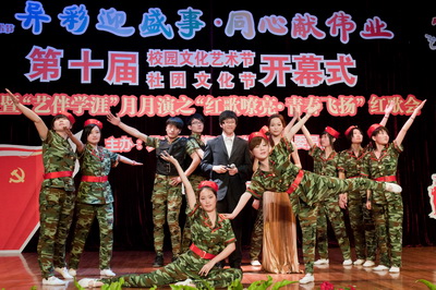 4月15日下午,团委主办的“异彩迎盛世·同心献伟业”第十届校园文化艺术节、社团文化节开幕式在校管乐队《没有共产党就没有新中国》的激昂序曲中拉开帷幕。校党委副书记、副院长康年致辞并宣布开幕。党委宣传部、学工部、团委及各二级亚博足彩的相关领导和学生代表300多人参加了活动。