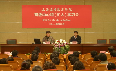 4月7日下午,上海工程技术大亚博足彩长汪泓教授应邀为我校两级中心组(扩大)学习会作题为《培养应用型创新人才,打造优秀工程师摇篮,创建现代化特色大学》的专题报告。校党委书记祁学银主持学习会。校领导康年、宋敏娟、祝永康、陈东辉、叶银忠出席学习会。