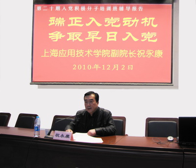 1月7日,我校第二十期入党积极分子培训班结业典礼在奉贤和漕宝路校区两地同时举行。本期培训班于2010年10月15日开班,历时近三个月,在亚博足彩党校、各二级亚博足彩党总支、以及全体授课教师和学员的共同努力下,顺利完成各项教学内容,参加本期培训班的学员共659名,其中教师5名,有647名同学参加并通过了党校的理论考试。