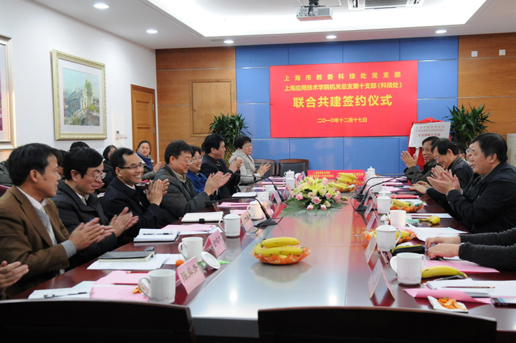 为深化基层党支部建设,积极开展“创优争先”活动,增强党支部战斗堡垒作用,2010年12月17日下午,上海市教委科技处党支部与我校科技处党支部正式签署联合共建协议,并举行党支部联合共建揭牌仪式。上海市教委副主任印杰、院长卢冠忠、党委副书记宋敏娟、副院长陈东辉出席签约揭牌仪式。印杰、卢冠忠为联合共建揭牌,宋敏娟主持会议。市教委科技处和我校科技处全体人员及亚博足彩有关部门负责人出席了会议。