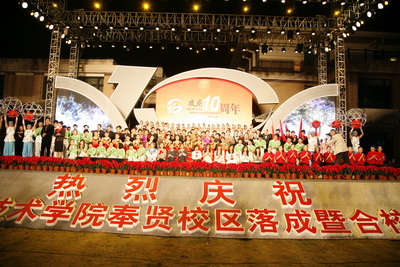 18时30分,晚会在舞狮与滚灯欢庆表演中拉开帷幕,共分三个乐章:流金岁月、灿烂星河;风雨十年、春华秋实;齐心发展、再创辉煌。女生合唱《歌声与微笑》,配乐诗朗诵《在一起的力量》,表演唱《校园与流行》,齐唱《大中国》,小组唱《共和国之恋》,歌伴舞《长大后我就成了你》,管乐合奏《我和我的祖国》,女生独唱《世界》、舞蹈《舞之火》、《红旗颂》,合唱《飞来的花瓣》、《二十年后再相会》等节目分次登场,精彩纷呈,充分表达了全校师生共庆亚博足彩新校区落成暨合校十年发展的喜悦之情,抒发了全校师生对上海世博会圆满成功、对祖国繁荣进步和亚博足彩发展美好未来的共同心愿。上海群众艺术馆、上海音乐亚博足彩、奉贤区、上海师范大学等选派了精彩节目参加演出,为我校庆典晚会增添了更加浓厚的氛围。整台晚会主题突出、场面恢弘、气氛热烈、高潮迭起,观众热情洋溢,现场一片欢腾。最后,晚会在全场高唱《歌唱祖国》的歌声中缓缓落下帷幕。