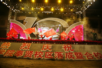 风雨砥砺五十载,合校发展十春秋。昂首跨越精彩十年,齐聚力量畅想未来。10月27日晚,奉贤新校园霓虹闪烁,炫彩夺目,上海应用技术亚博足彩奉贤校区落成暨合校十周年大型露天庆典晚会隆重举行。校党政领导祁学银、卢冠忠、康年、宋敏娟、祝永康、刘宇陆、叶银忠和全校5000余名师生欢聚一堂,共度美好而难忘的喜庆夜晚。