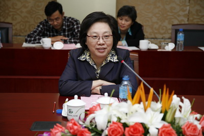 在图文信息中心会议室,殷一璀在听取了我校党委书记祁学银和院长卢冠忠有关我校基本情况和庆典工作的汇报后,作了重要讲话。殷一璀首先对我校新校区落成表示热烈祝贺,对全校师生员工表示亲切问候,并就我校学科定位、人才培养、师资队伍建设等一系列问题做出重要指示。