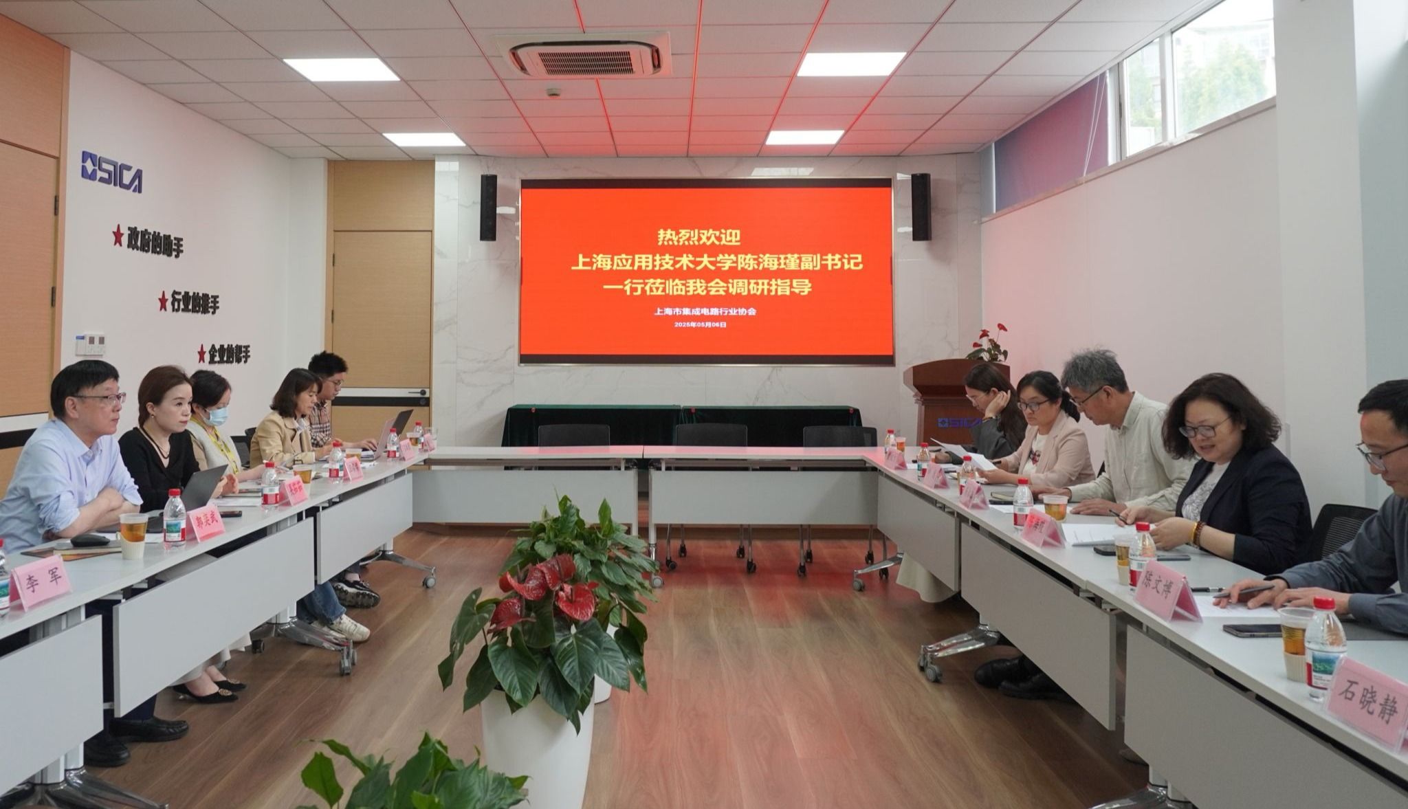 为精准对接集成电路产业人才需求,推动产学研深度融合,5月6日,校党委副书记陈海瑾率队到访上海市集成电路行业协会,与集成电路企业代表一同开展交流座谈。上海市集成电路行业协会秘书长郭奕武携协会同仁热情接待,双方围绕人才培养、技术创新、产业协同等议题展开深度交流,共同探索应用型人才培养新范式。材料技术学部主任房永征陪同走访。