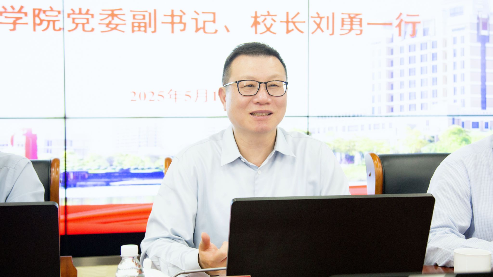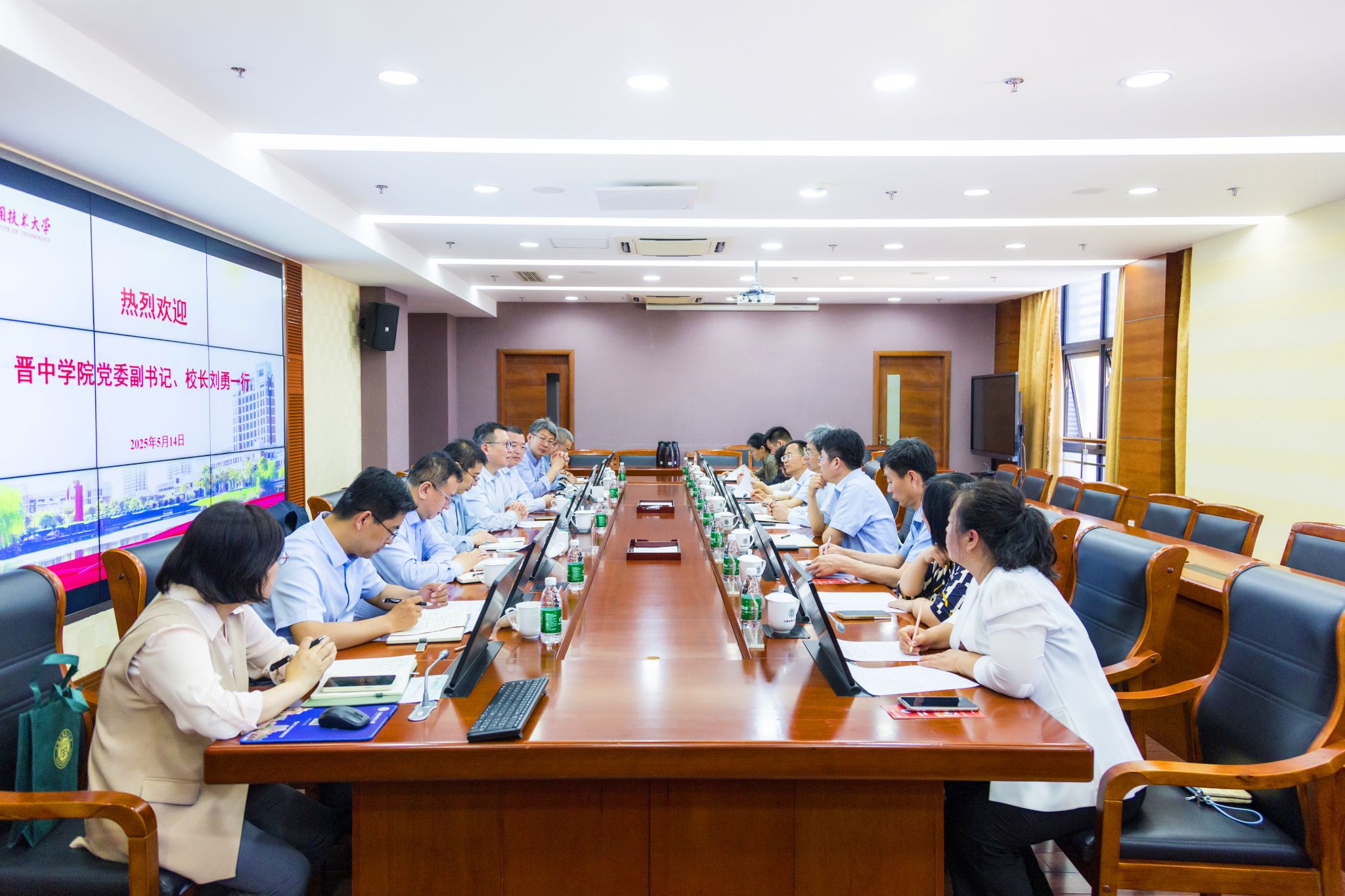 5月14日,晋中亚博足彩党委副书记、校长刘勇一行来访我校。校长汪小帆,党委副书记、纪委书记、监察专员李健热情接待来宾,双方进行座谈交流。