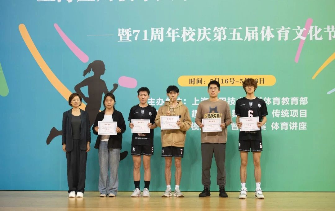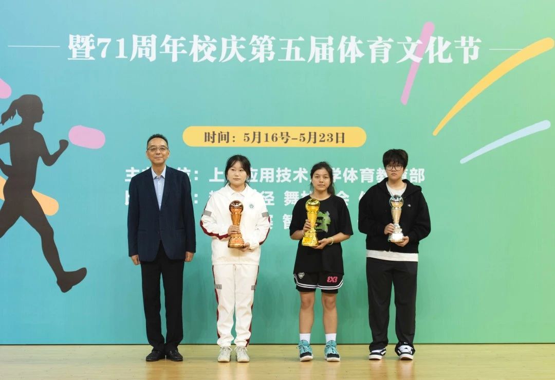 毛祥东为在2025年排球杯比赛中荣获上海市第三名的我校女排运动队颁奖