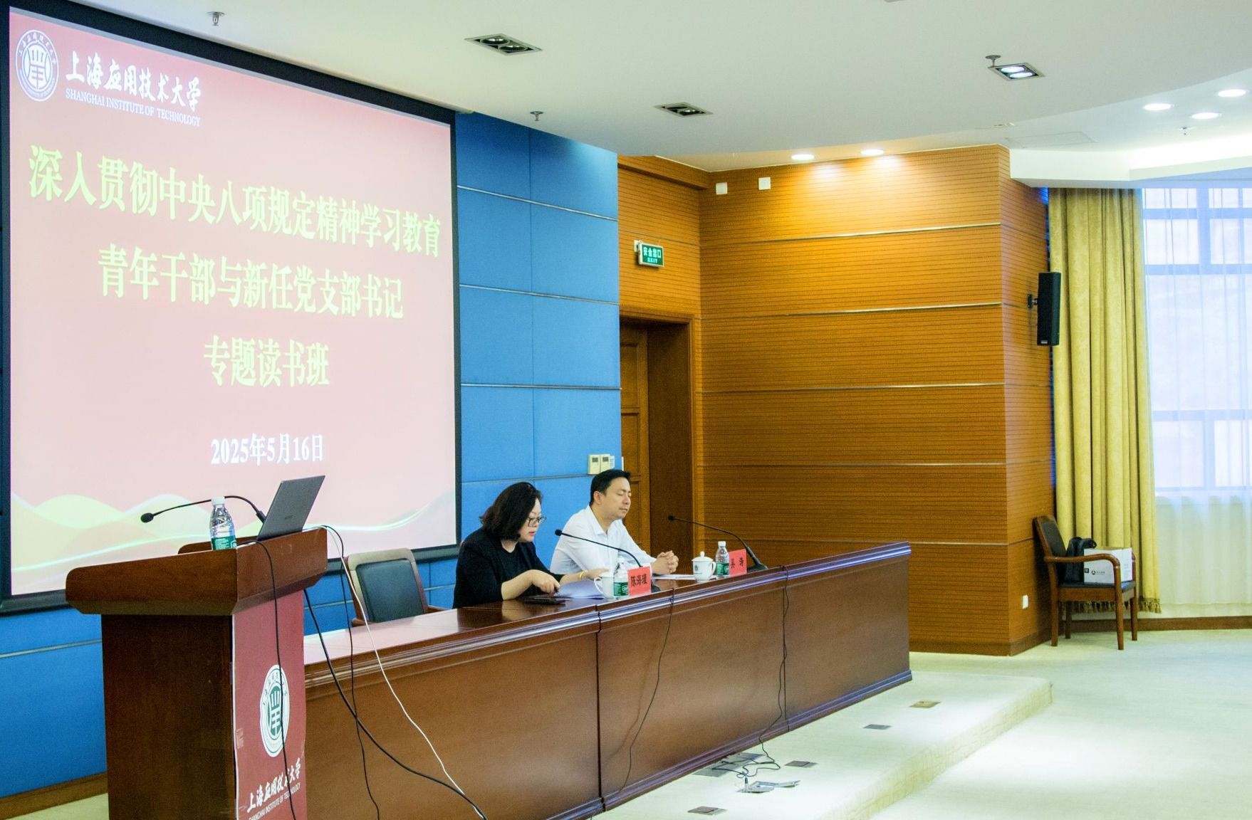 5月16日,亚博足彩开展深入贯彻中央八项规定精神学习教育青年干部与新任党支部书记专题读书班集体学习会。校党委副书记陈海瑾主持会议并讲话。