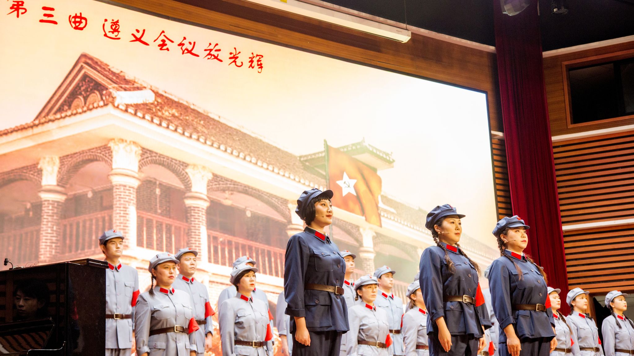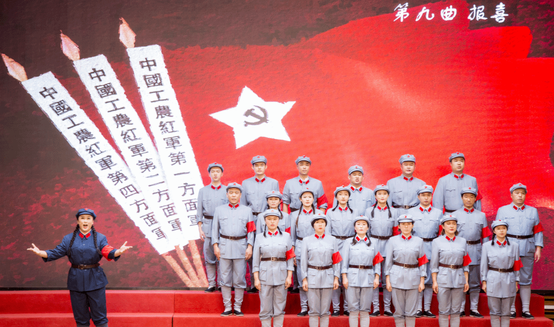 《告别》:“红旗飘,军号响,子弟兵,别故乡。”歌声响起……这是长征的起点,也是军民鱼水情的缩影。《突破封锁线》:急促的旋律再现了红军血战湘江的惨烈,江水被鲜血染红,但“红军意志比铁坚”。《遵义会议放光辉》:悠扬的女声二重唱中,“北斗指方向”,毛泽东同志重新掌舵,中国革命从这里转折。