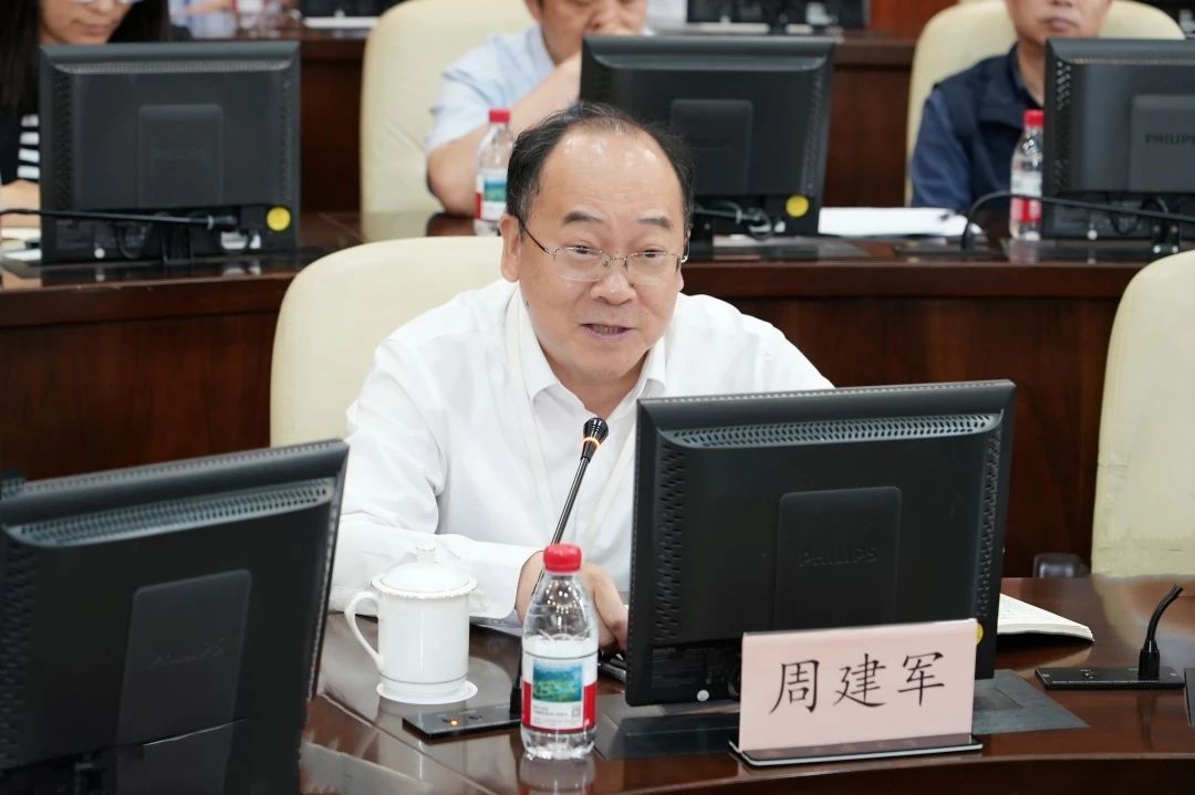 周建军代表上海大学对上海应用技术大学前来学习交流表示热烈欢迎,并介绍了上海大学的基本情况。周建军表示,长期以来两校建立了良好持续的合作关系,开展了深入务实的合作交流,他希望以此次交流为契机,互学互鉴、汇聚合力,为两校深化产教融合和协同创新注入强劲动力。