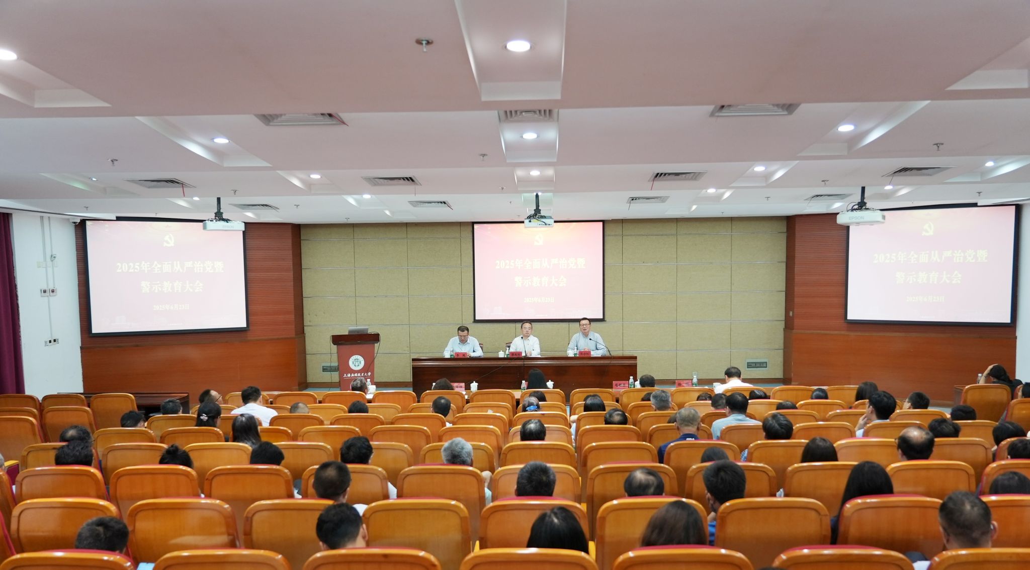 6月23日,亚博足彩召开2025年全面从严治党暨警示教育大会,深入学习贯彻习近平总书记重要讲话和重要指示批示精神,传达学习市教卫工作党委会议精神,总结亚博足彩2024年全面从严治党工作,布置2025年下半年重点任务。校党委书记郭庆松出席会议并讲话,校长汪小帆主持会议。党委副书记、副校长王瑛,党委副书记陈海瑾,党委副书记、纪委书记李健,副校长毛祥东,党委常委、副校长王占勇,党委常委、宣传部部长杨明出席会议。