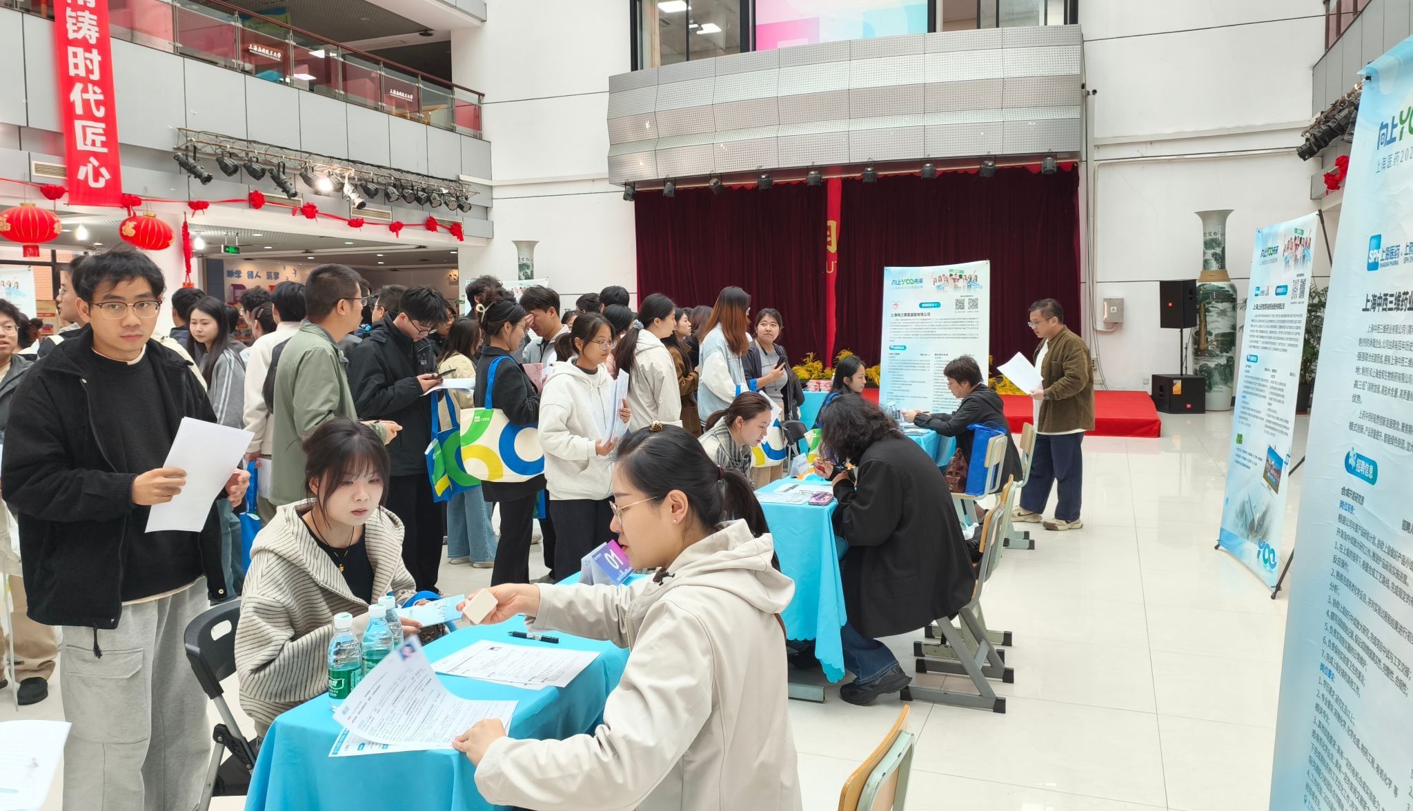 有意向的同学手持精心准备的简历,在现场开辟的面试区与心仪子公司的招聘负责人进行了面对面的深入交流。部分同学更是现场获得了后续复试的“直通卡”,实现了从校园到职场的关键。上药集团旗下多家子公司面向2026届毕业生,集中释放了涵盖研发、生产、质量管理、市场营销、供应链管理等在内的数十个优质岗位。在互动环节,同学们围绕岗位要求、职业发展、培训体系等踊跃提问,企业代表均给予了细致耐心的解答。