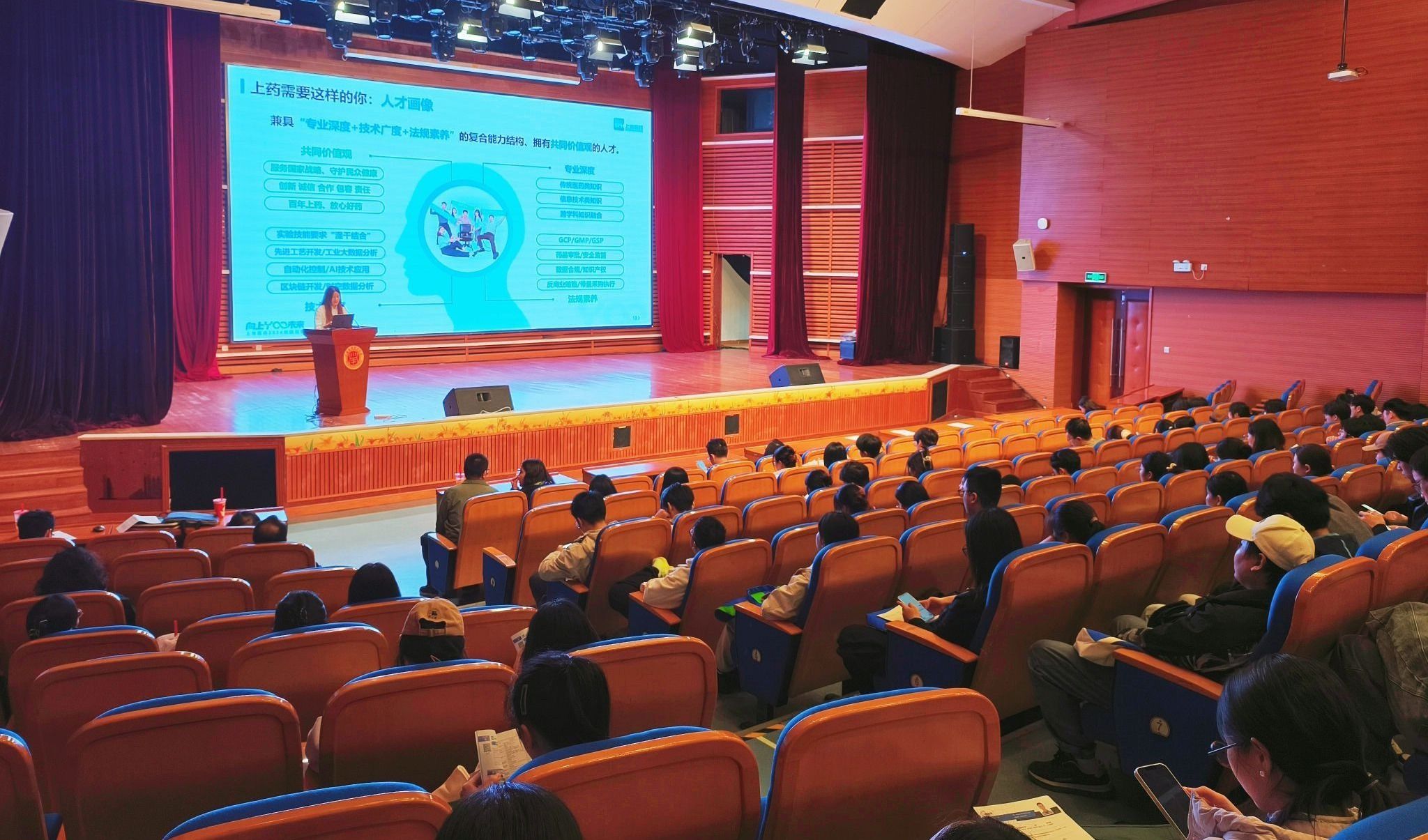为深入贯彻落实国家关于促进高校毕业生就业创业的决策部署,深化校企合作,搭建学生与行业领军企业的高效对接平台,11月4日,由党委学生工作部、化工与能源技术学部联合主办的“上药集团2025年校园宣讲会”在大学生活动中心举行。本次宣讲会特邀上海医药集团及其旗下上药控股、上药康德乐等核心子公司莅临,为我校2026届毕业生带来了一场内容丰富、机遇直通的职业发展盛宴。活动吸引了来自化工、生物医药、制药工程等相关专业百余名学子踊跃参与。化工与能源技术学部副书记、副主任钱婷婷、党委学工部就业办江旭恒、制药工程专业主任张华以及辅导员们一同来到现场。