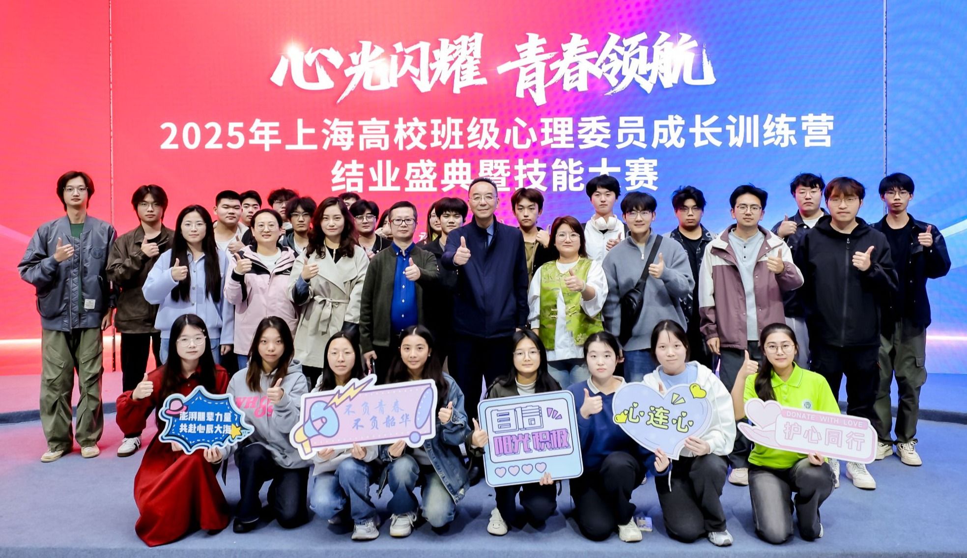 11月7日,由上海应用技术大学承办的2025年上海高校班级心理委员成长训练营结业盛典暨技能大赛圆满举行,近百名上海高校学子与温暖同行,共赴这场心灵的盛会。上海应用技术大学党委副书记、副校长王瑛,上海市教委德育处副处长杨长亮,上海高校心理健康教育领域和精神卫生机构等业内专家学者,以及相关高校学工部、心理中心负责人、指导教师与决赛选手共同参加活动。