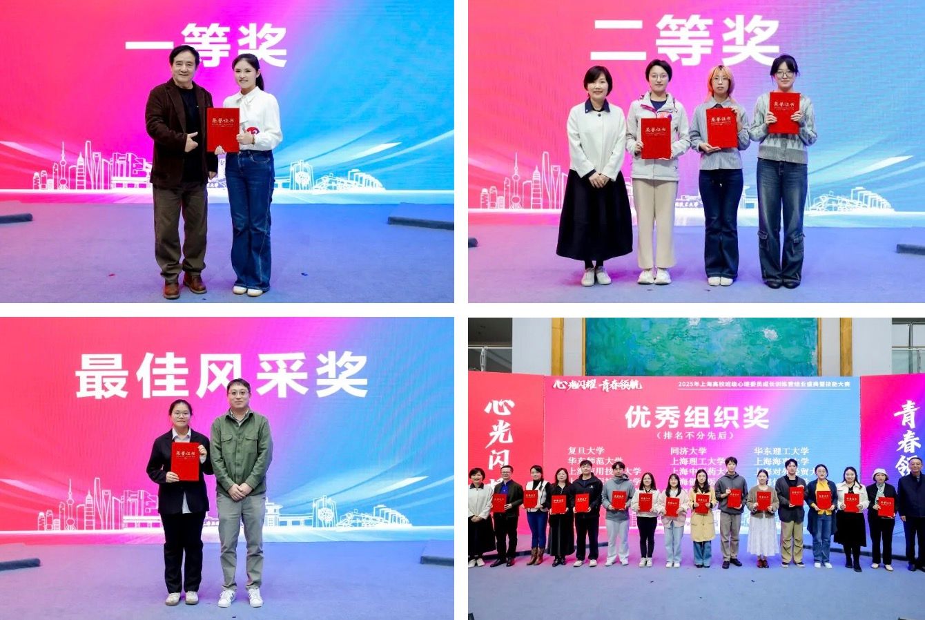 “本次训练营与技能大赛是上海推进心理健康教育的关键载体”,杨长亮高度肯定心理委员是并肩心理健康教育教师、辅导员的年轻骨干力量,希望未来“以训促建、以训代练、以训促研”,各高校持续建强心理健康教育工作网络,提升心理委员专业能力,同时深化校际研讨,分享特色成果。