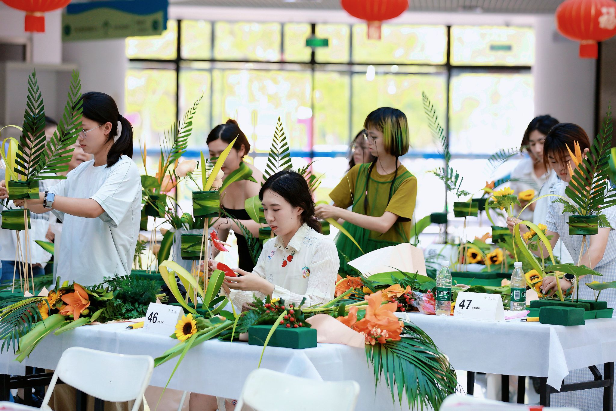 10月12日下午,2025年上海市民海派插花花艺大赛大学生专场暨“海派插花非遗进校园”活动在奉贤校区大学生活动中心绚丽启幕。本次活动由上海市绿化委员会指导,上海市公园事务中心主办,上海插花花艺协会和上应大高校花卉美育名师工作室联合承办,以花为约,以美为媒,开启了一场融艺术、教育与文化传承于一体的青春盛宴。来自上海应用技术大学和上海交通大学、同济大学、华东理工大学、上海师范大学、上海商亚博足彩和上海旅游高等专科亚博足彩七所高校的70名学子同台竞艳,其中迎来德国、俄罗斯、马来西亚等国的十余名国际留学生共赴这场东方美学之约。