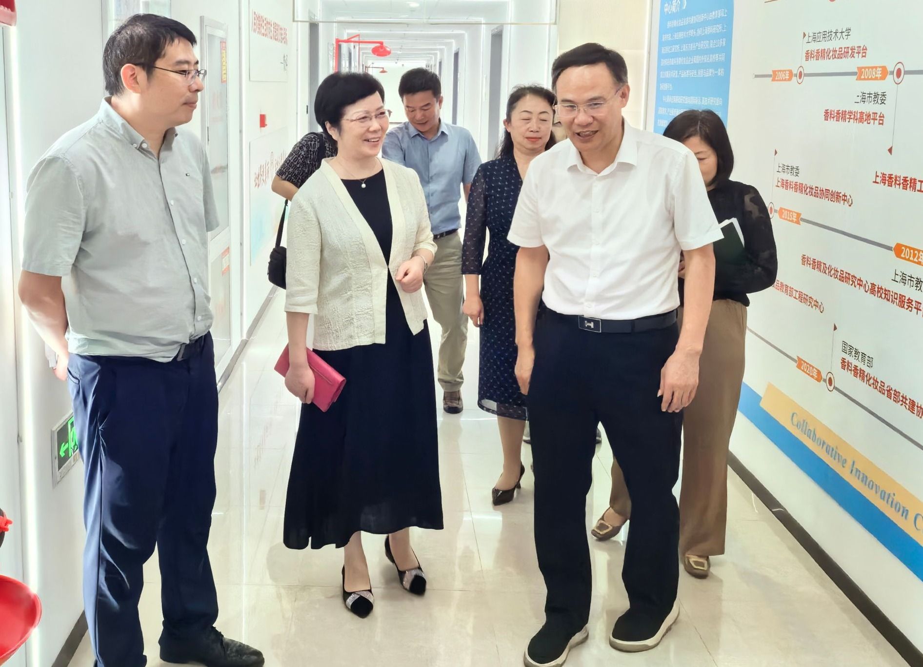 会后,在香料香精化妆品协同创新中心主任柯勤飞的陪同下,石骁敏一行参观中心。
