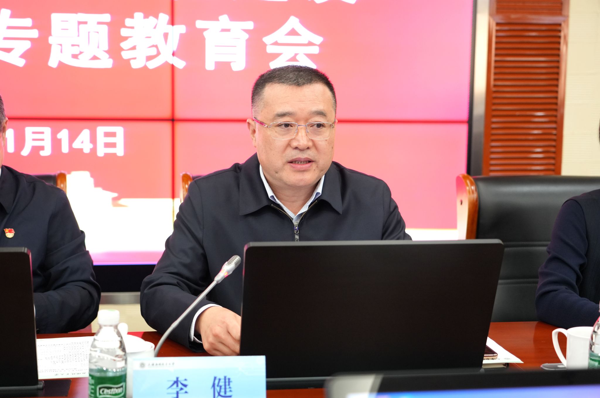 校党委书记郭庆松出席会议并作重要讲话,校党委副书记、纪委书记、监察专员李健主持会议并部署专项监督工作,校党委常委、副校长王占勇介绍项目整体情况。校纪检监察机构、基建处、资产与实验室管理处、审计处、财务处等职能部门及项目代建、施工、监理等所有参建单位代表共同参会,凝聚共识,筑牢廉洁根基。