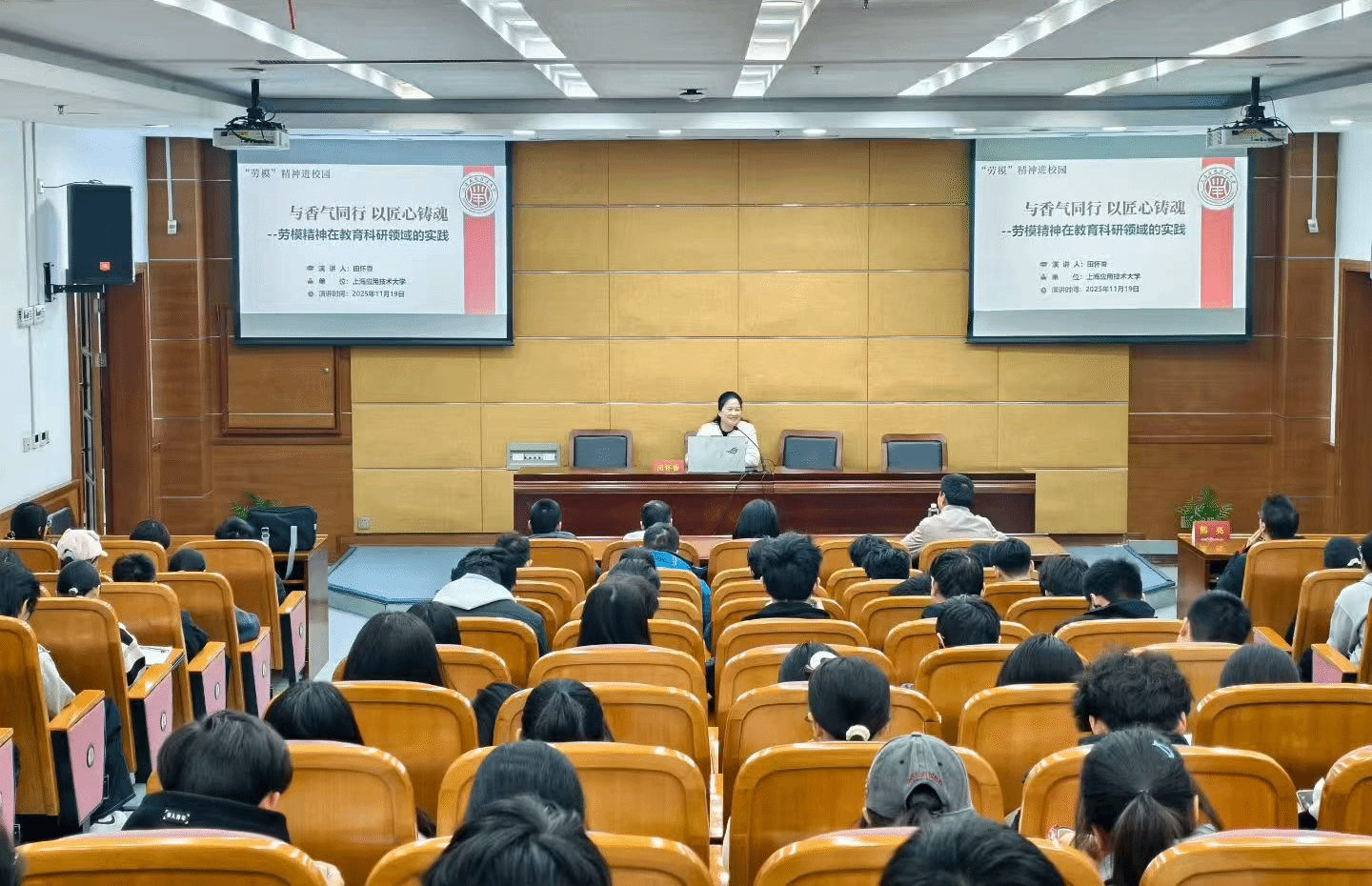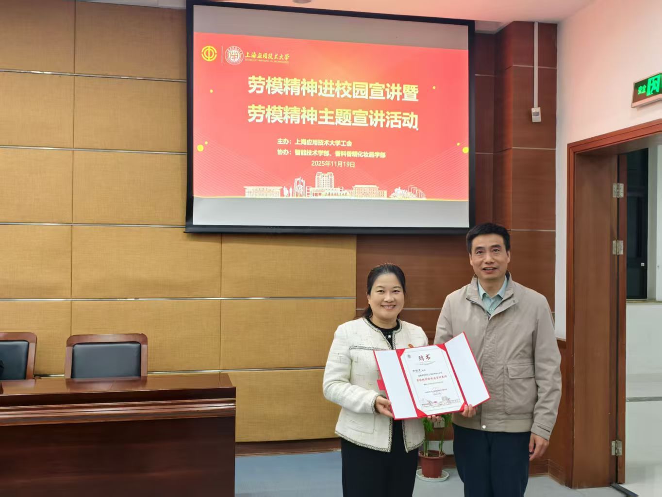 为进一步发挥劳模先进榜样示范引领作用,大力弘扬劳模精神、劳动精神,11月19日晚,由校工会主办,智能技术学部和香化学部协办,亚博足彩“劳模精神进校园”主题宣讲活动举行,特邀我校上海市劳模田怀香教授为全校师生作主题宣讲。校工会为田怀香教授颁发“劳模精神进校园”宣讲教师聘书。
