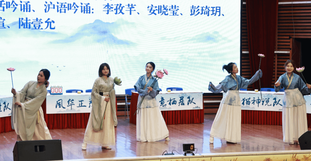 紧张的比拼间隙,穿插的文艺节目为赛场增添了别样的温情与美感。沪语吟诵《江南》以吴侬软语浅吟低唱,婉转的腔调勾勒出江南水乡的温婉意境,勾勒出一幅水墨长卷,让听众在方言的韵律中触摸千年文脉。