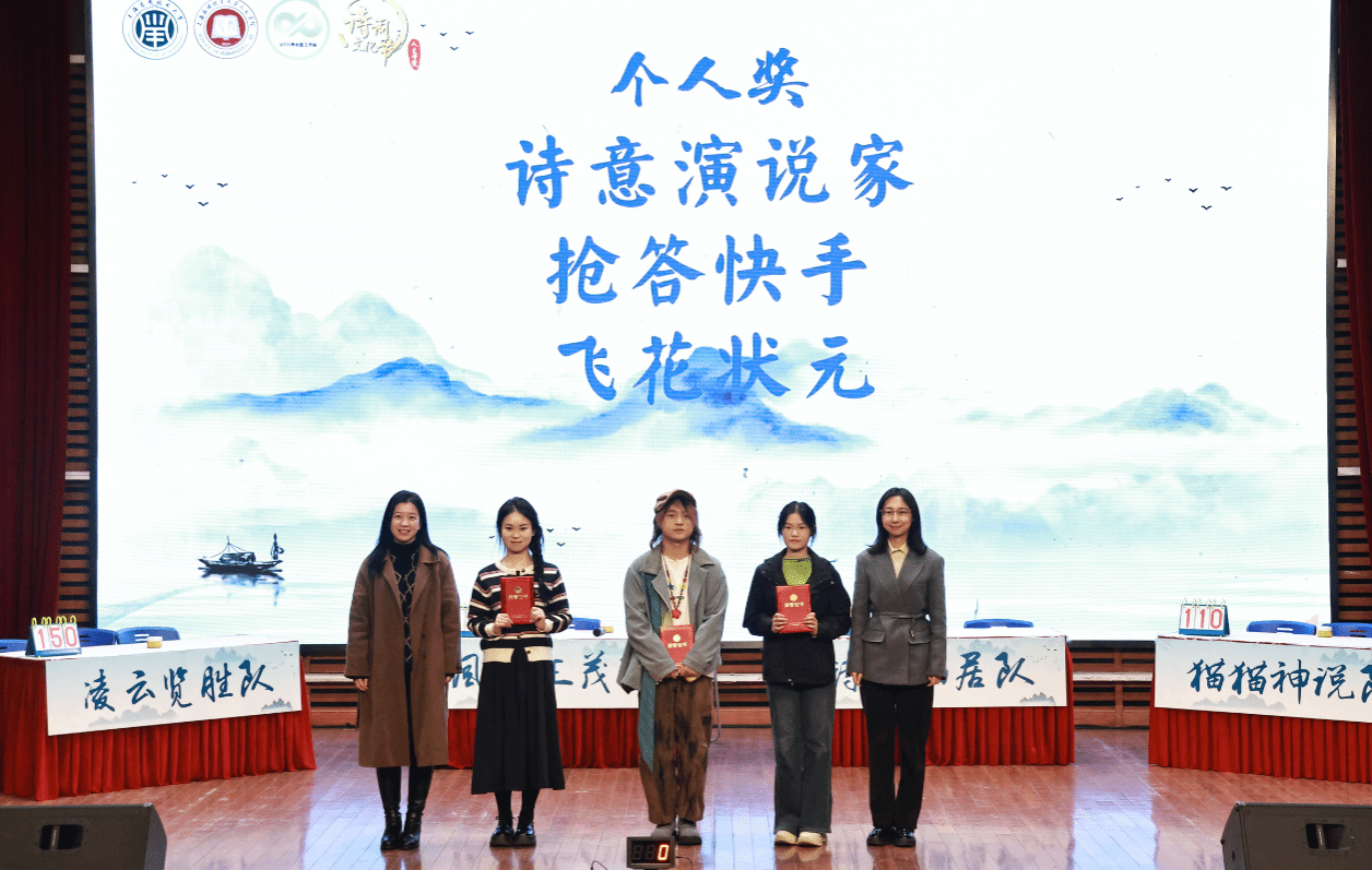 经过激烈比拼,凌云揽胜队荣获团体一等奖,风华正茂队、挂席拾月队获二等奖,溪山美哉队、诗意栖居队、猫猫神说队获三等奖;化工学部王茗萱,人文亚博足彩张潇玮、支毛毛分获“诗意演说家”“飞花状元”“抢答快手”个人奖项。