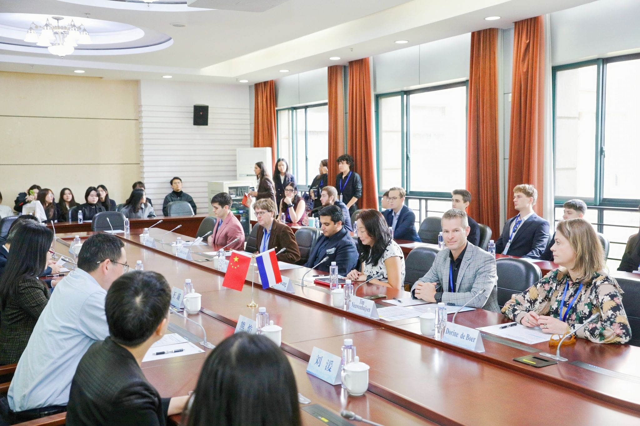 陈青长在致辞中对到访的荷兰师生表示热烈欢迎。正是因为两校间共同的育人特色,促成了活动丰富、深入产业的中国经济周。他表示,希望同学们从专题讲座与企业参观中了解中国经济;在课余体验中感受中国传统文化,祝大家在两周的学习里,收获满满。