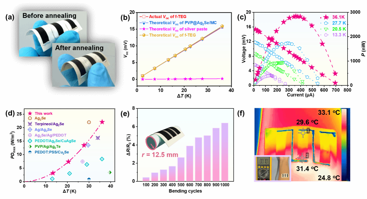 更值得关注的是材料的“柔性表现”:经过 1000 次反复弯折后,其功率因子仍能保持 93% 以上,适配智能穿戴设备贴肤、弯曲的使用场景,解决了“高性能”与“高柔性”难以兼顾的痛点。