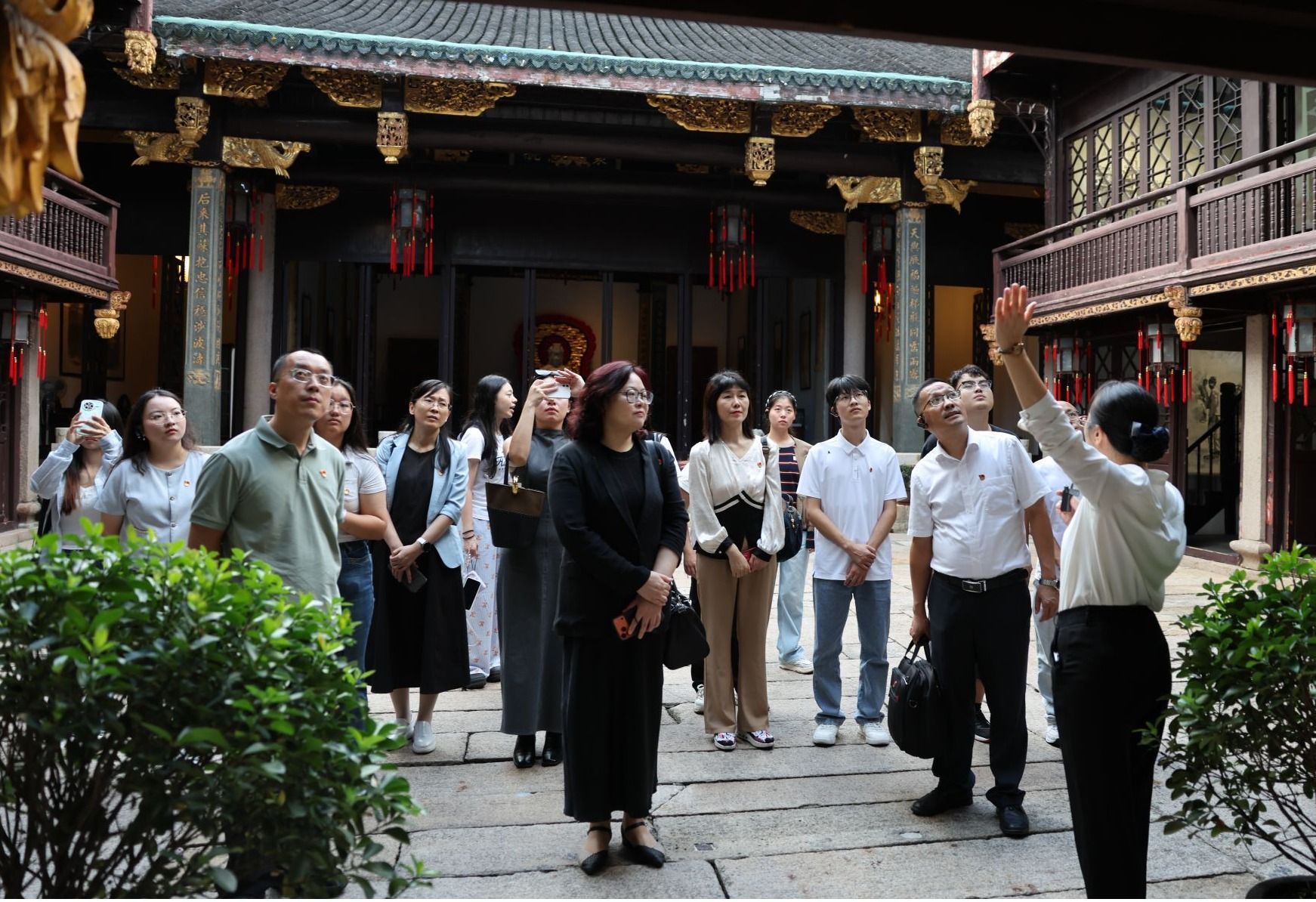 此次主题活动以“红色巴士”为移动课堂,围绕上海工人运动历史规划教育路线开展。全体人员从初心之地南昌路集结出发,开启沉浸式研学之旅。在五卅纪念碑,队伍整齐怀揣敬仰凝视着纪念碑浮雕,仿佛重回那段热血岁月,体会到今日幸福来之不易。中国劳动组合书记部旧址作为早期工运的重要据点,加深了大家对工运历史的认识。在三山会馆,师生党员一起参观文物、图片与场景复原,详细了解了上海工人第三次武装起义的全过程,大家颇受触动。