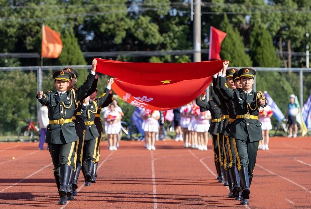 开幕式上,国旗护旗队、校旗护卫队、鲜花方队、红旗方队逐一登场。他们气势威严、英姿飒爽,尽展上应学子的昂扬与活力。