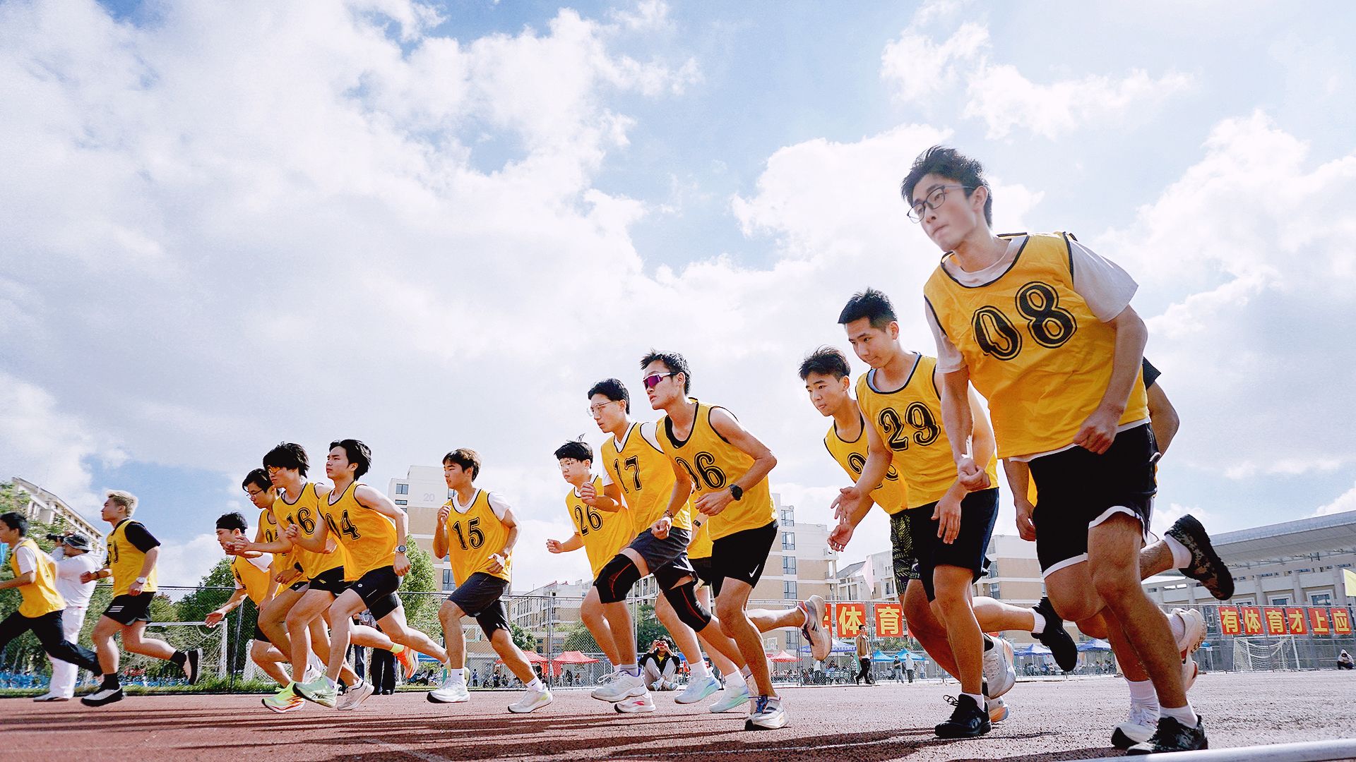 赛场上,运动健儿们凝神屏息,躬身待发,身影瞬间冲出跑道,疾如划破天际的闪电;手握铅球,凝心聚神,一气呵成,娴熟有力;助跑、踏跳、腾跃,惊鸿身姿引来阵阵欢呼;挺身、起跃、跨杆,不断越过更高的杆线,每一个全力以赴的瞬间都在诉说青春的热烈与真诚。
