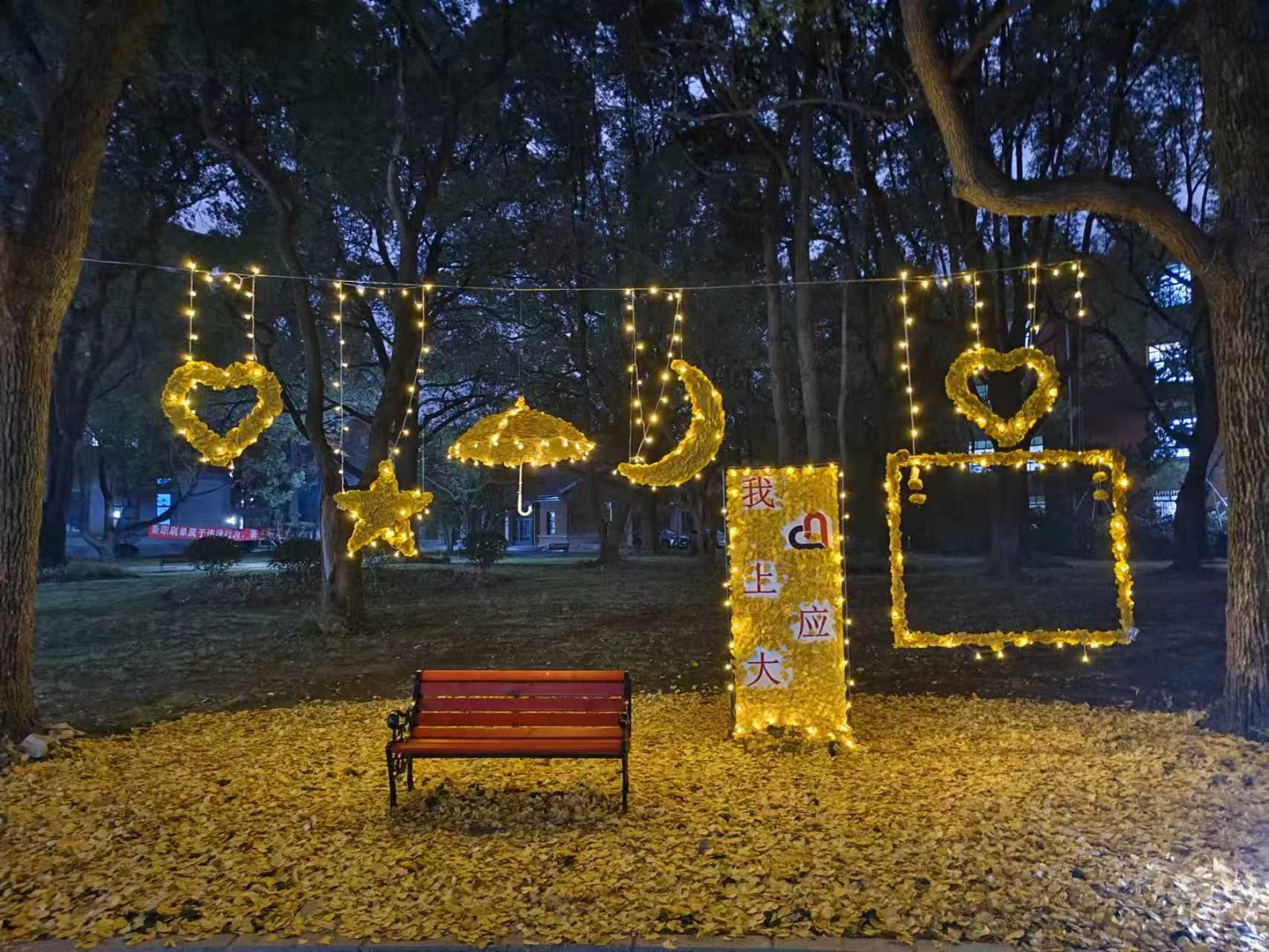 当寒风为校园染上冬的底色,徐汇校区的草坪上正悄然绽放一抹暖黄诗意。12月13日,后勤团队以金黄银杏叶为笔、以草坪为卷,精心打造了一处冬日限定主题景观,让落叶变废为宝,为师生们送上一份触手可及的冬日浪漫与静谧。