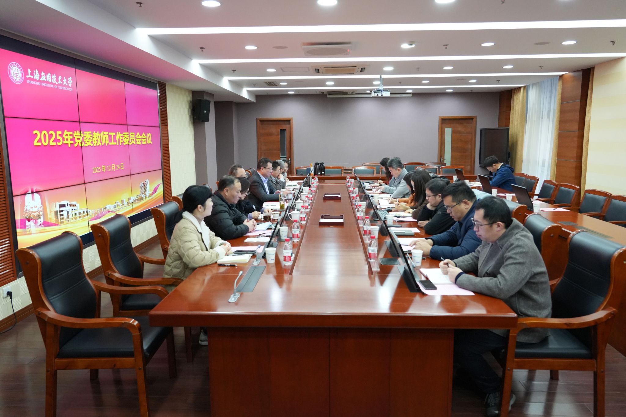 12月24日,党委教师工作委员会召开2025年第四次全体会议。校党委书记、党委教师工作委员会主任郭庆松主持会议,校长、党委教师工作委员会主任汪小帆,校党委副书记、党委教师工作委员会副主任陈海瑾,副校长吴志军出席会议,党委教师工作委员会各成员单位负责人参加会议。