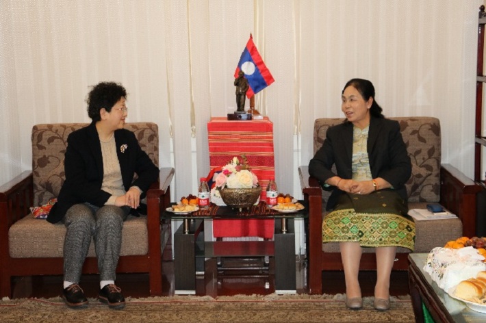 万迪对宋敏娟一行来访表示热烈欢迎,宋敏娟对老挝大使馆的热情接待表示感谢。