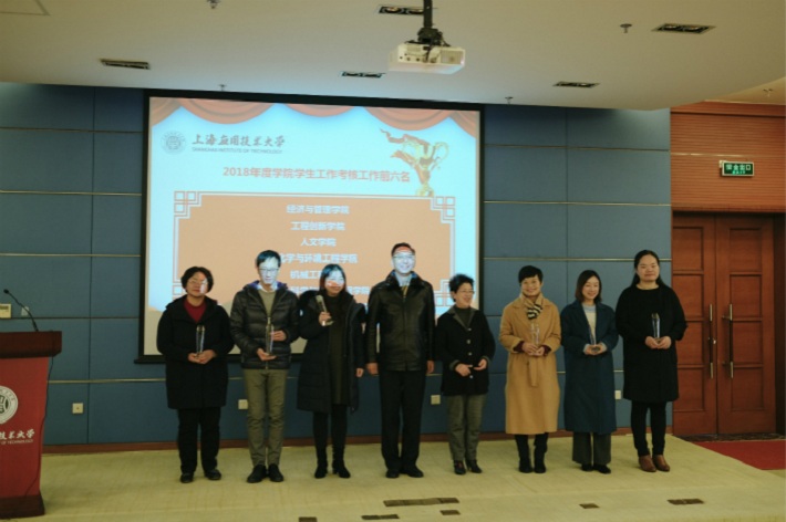会上,宋敏娟为2018年上海高校辅导员素质能力大赛、上海高校辅导员论坛征文活动获奖代表颁发奖状,并向2018年度学生工作考核前六名颁发奖杯。