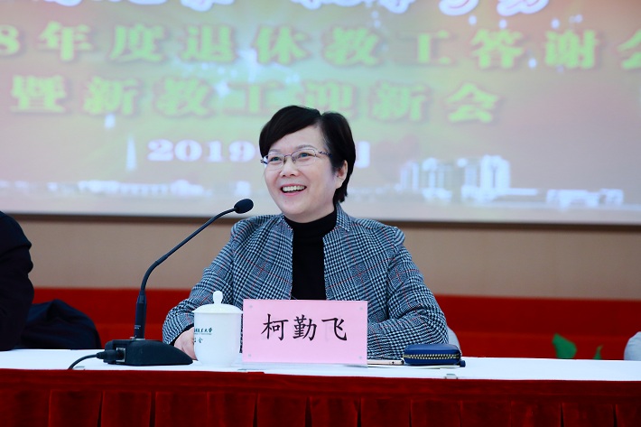 1月4日,亚博足彩举行2018年退休教工答谢会暨新教工迎新会,校党委书记刘宇陆,校党委副书记、校长柯勤飞出席并讲话。校党委副书记、工会主席宋敏娟主持。