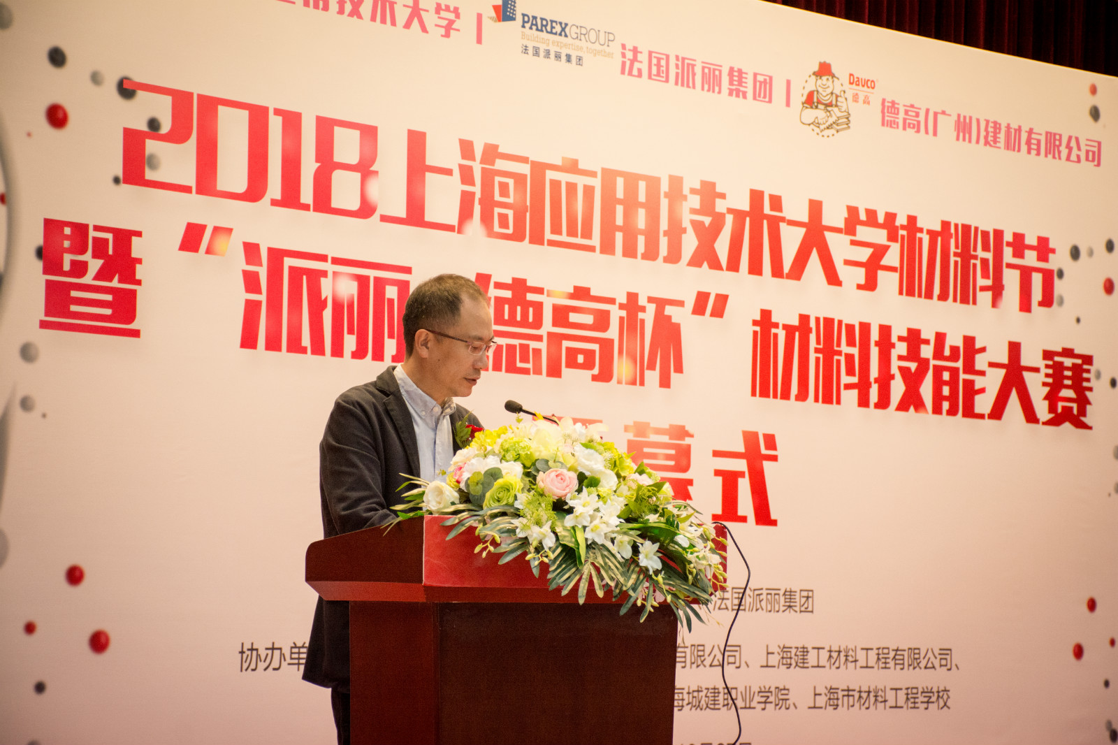10月27日,校第二届材料节暨“派丽·德高”杯材艺大赛举行,副校长毛祥东出席并致开幕辞。同济大学、上海第二工业大学、上海城建职业亚博足彩等兄弟亚博足彩及上海材料工程亚博足彩相关领导和专家,法国派丽集团、上海市新材料协会、上海建材集团、上海建工材料工程有限公司等行业企业专家应邀出席。