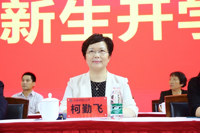 校党委副书记、校长柯勤飞代表上海应用技术大学全体师生员工向来自全国各地“小萌新”们表示热烈的欢迎,向多年来倾注全部心血、无私抚育他们成长成才的家长和老师表示诚挚的敬意,并发表题为“从心奋斗,筑梦新时代”的主题讲话。