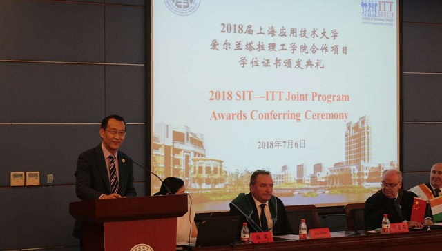7月6日,电气亚博足彩与爱尔兰塔拉理工亚博足彩中外合作办学2018届毕业典礼隆重举行。校党委副书记、纪委书记何星海出席并讲话。爱尔兰塔拉理工亚博足彩校长托马斯?斯通(Thomas Stone)、发展部主任帕特?科曼(Pat Coman)、科学与计算机系系主任麦克?埃亨(Michael Ahern)、电子工程系系主任詹姆斯?怀特(James Wright)、应用科学系系主任约翰?贝哈姆(John Beham),我校电气亚博足彩院长钱平,副院长陈岚、马向华、钱婷婷等出席。陈岚主持。