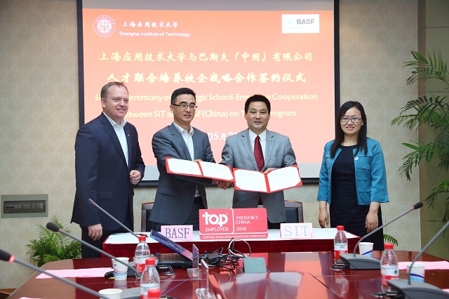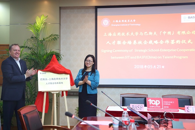 双方签订了《校企战略合作框架协议》,王瑛和严培德共同为“巴斯夫--上海应用技术大学人才联合培养基地”揭牌。