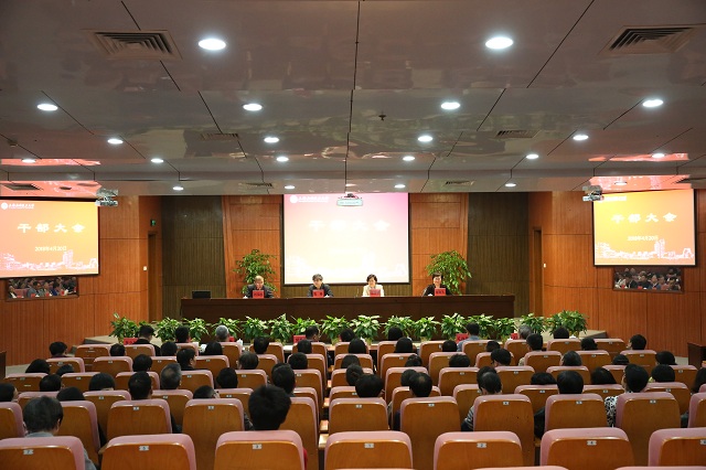 4月20日,亚博足彩在徐汇校区图文信息楼召开干部大会,宣布上海市委、市人民政府关于上海应用技术大学领导班子成员调整的决定:任命柯勤飞为上海应用技术大学党委副书记、校长,王瑛为上海应用技术大学党委副书记、副校长,毛祥东为上海应用技术大学副校长。