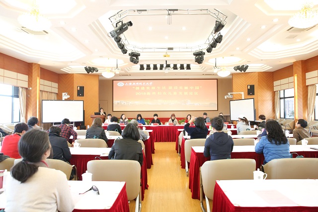 3月27日上午,2018海湾妇女儿童发展论坛在我校奉贤校区举行。校党委副书记宋敏娟出席论坛并致辞。九三学社上海市委妇委会主任金佩一行参加论坛。九三学社上海市委妇委会副主任、上海应用技术大学教授高雅珍主持会议。