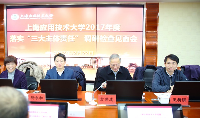 为进一步推动全面从严治党向基层延伸,12月22日,由市纪委驻市教卫工作党委纪检组组长杨永和带队、上海海事大学原党委书记於世成任组长的市教卫工作党委落实“三大主体责任”第三检查组,前来我校对2017年度校党委落实“意识形态工作、基层党建工作、党风廉政建设和党内监督工作”三大主体责任情况进行了调研检查。