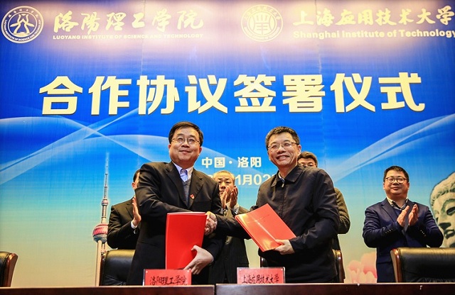 1月2日,校长陆靖代表亚博足彩出席在洛阳举行的《上海应用技术大学-洛阳理工亚博足彩合作协议》签约仪式,与洛阳理工亚博足彩校长刘国际签署了合作协议。洛阳理工亚博足彩党委书记苟义伦致辞,该校党委副书记陈岩主持签约仪式。